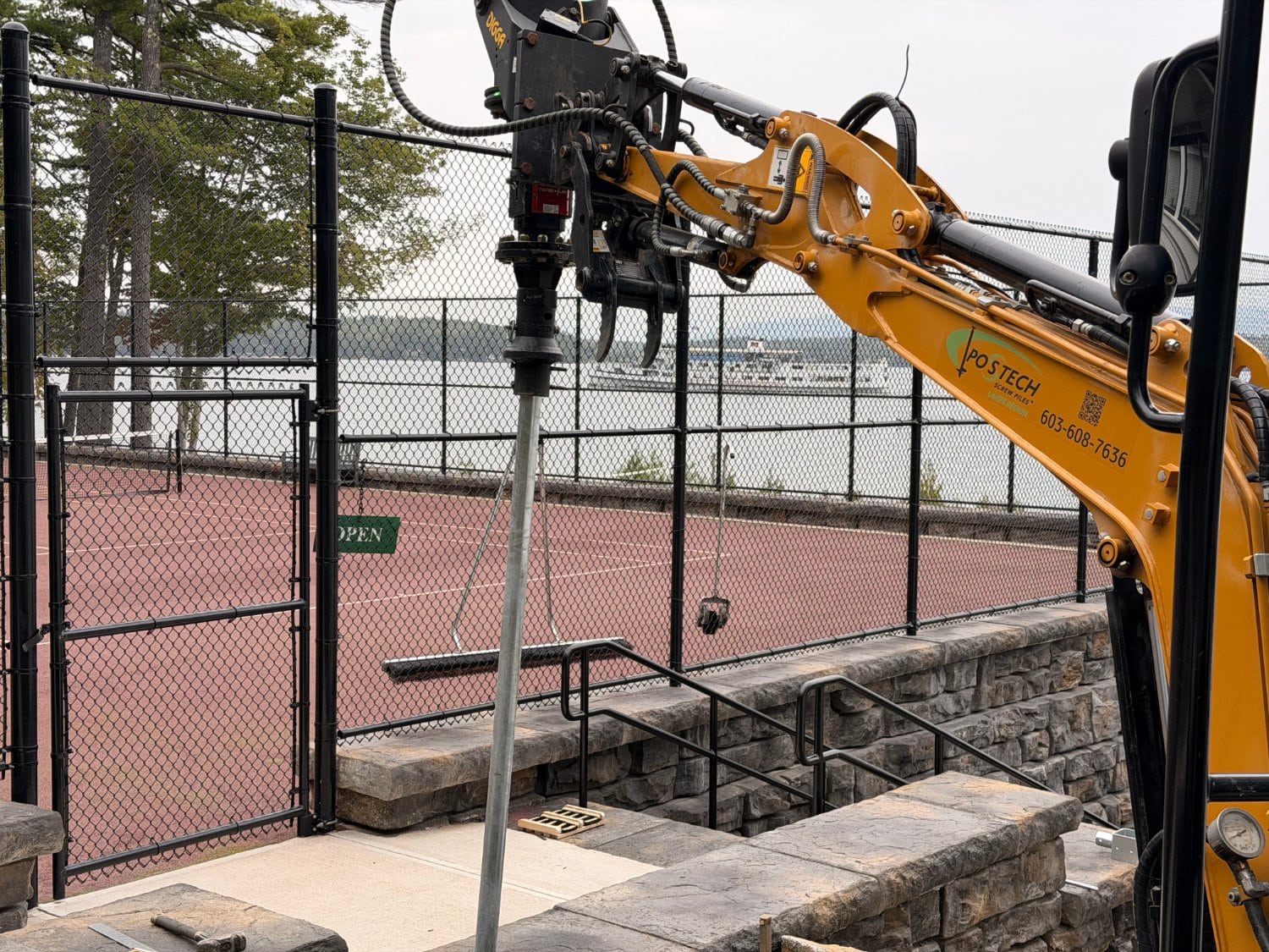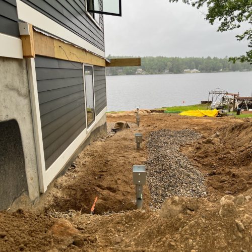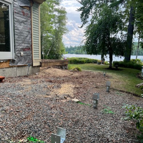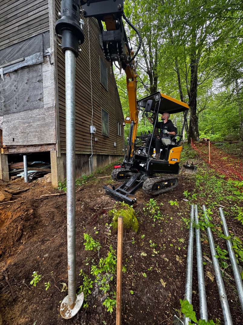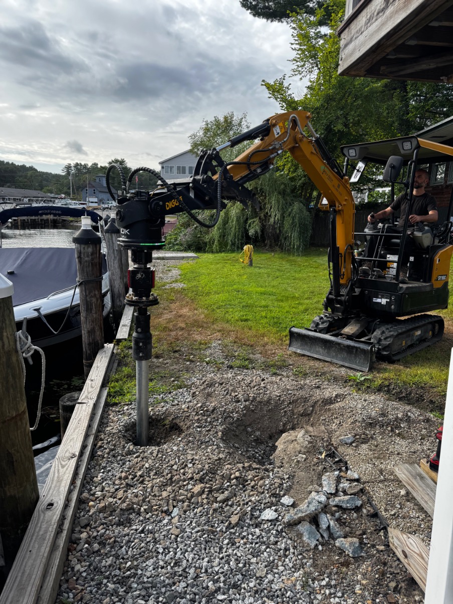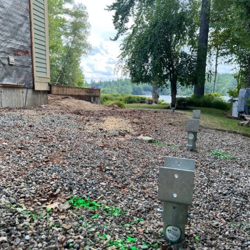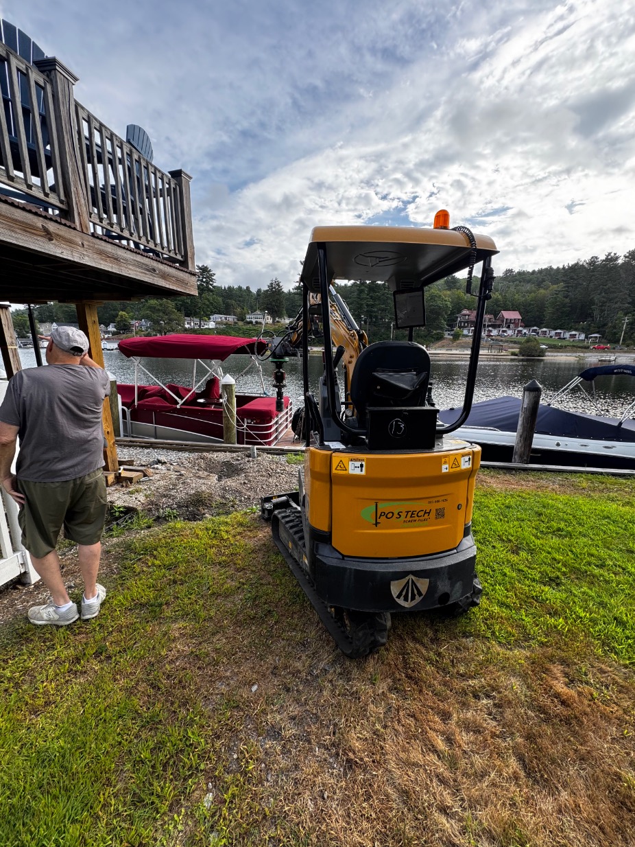 Faced with failing deck footings and soft, saturated soil, a multi-unit condominium association on Lake Winnipesaukee turned to Postech Lakes Region for a reliable solution. With no other footing option viable, we installed deep helical piles—nearly 30 feet in depth with multiple helices—to ensure long-term stability for the lakefront covered deck.