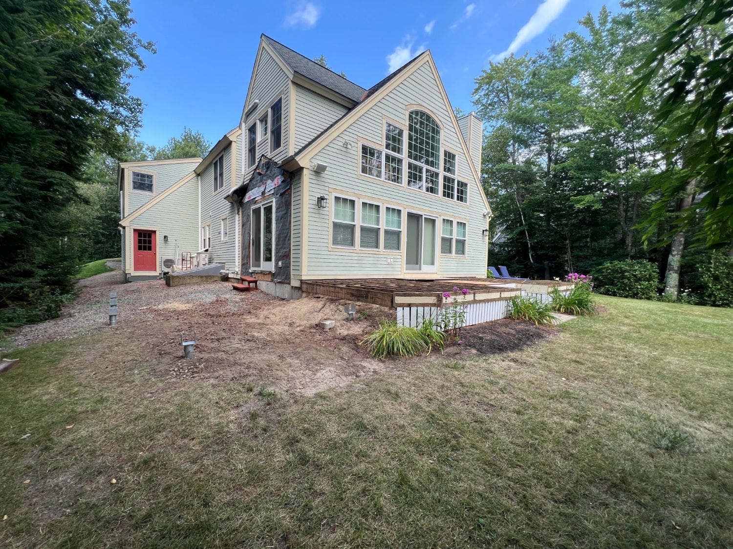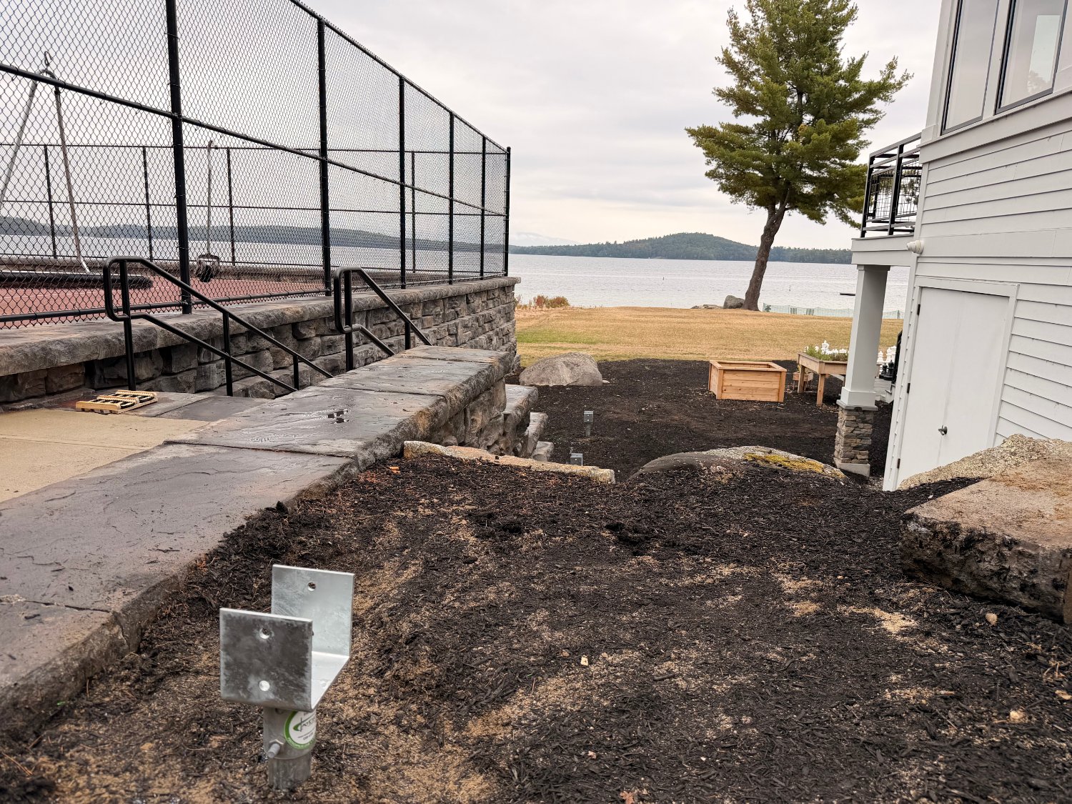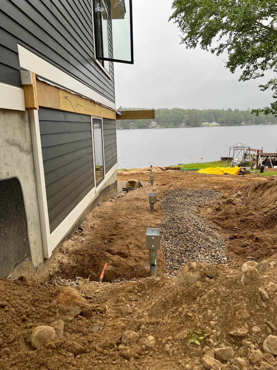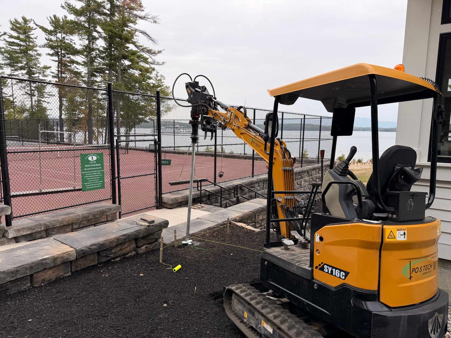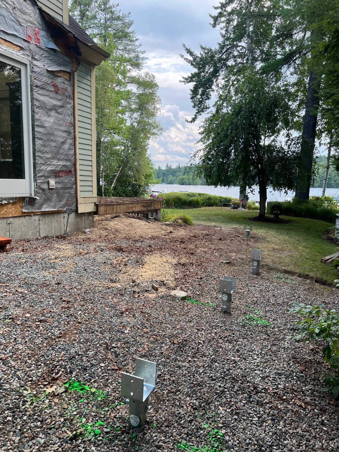 Faced with failing deck footings and soft, saturated soil, a multi-unit condominium association on Lake Winnipesaukee turned to Postech Lakes Region for a reliable solution. With no other footing option viable, we installed deep helical piles—nearly 30 feet in depth with multiple helices—to ensure long-term stability for the lakefront covered deck.