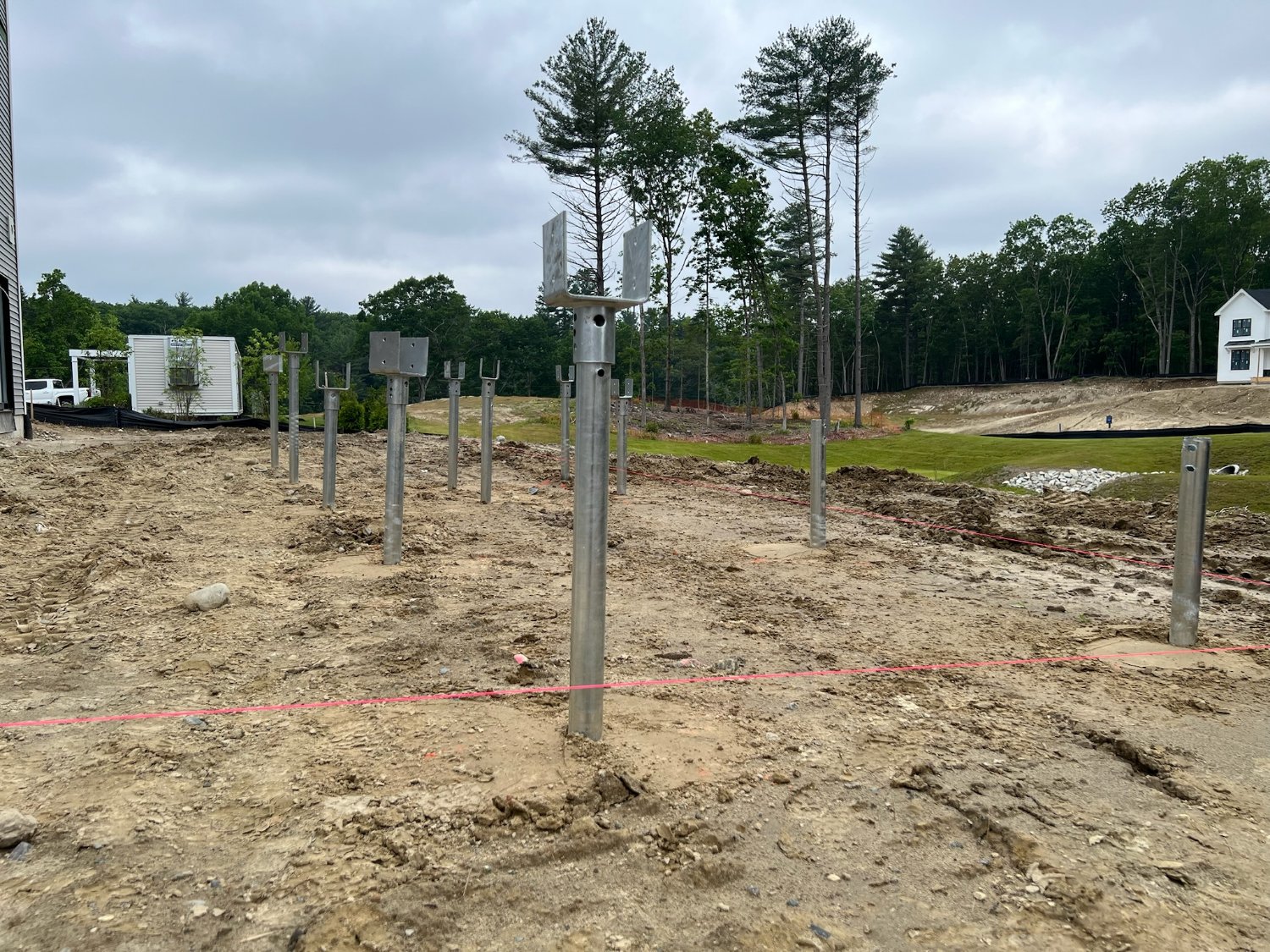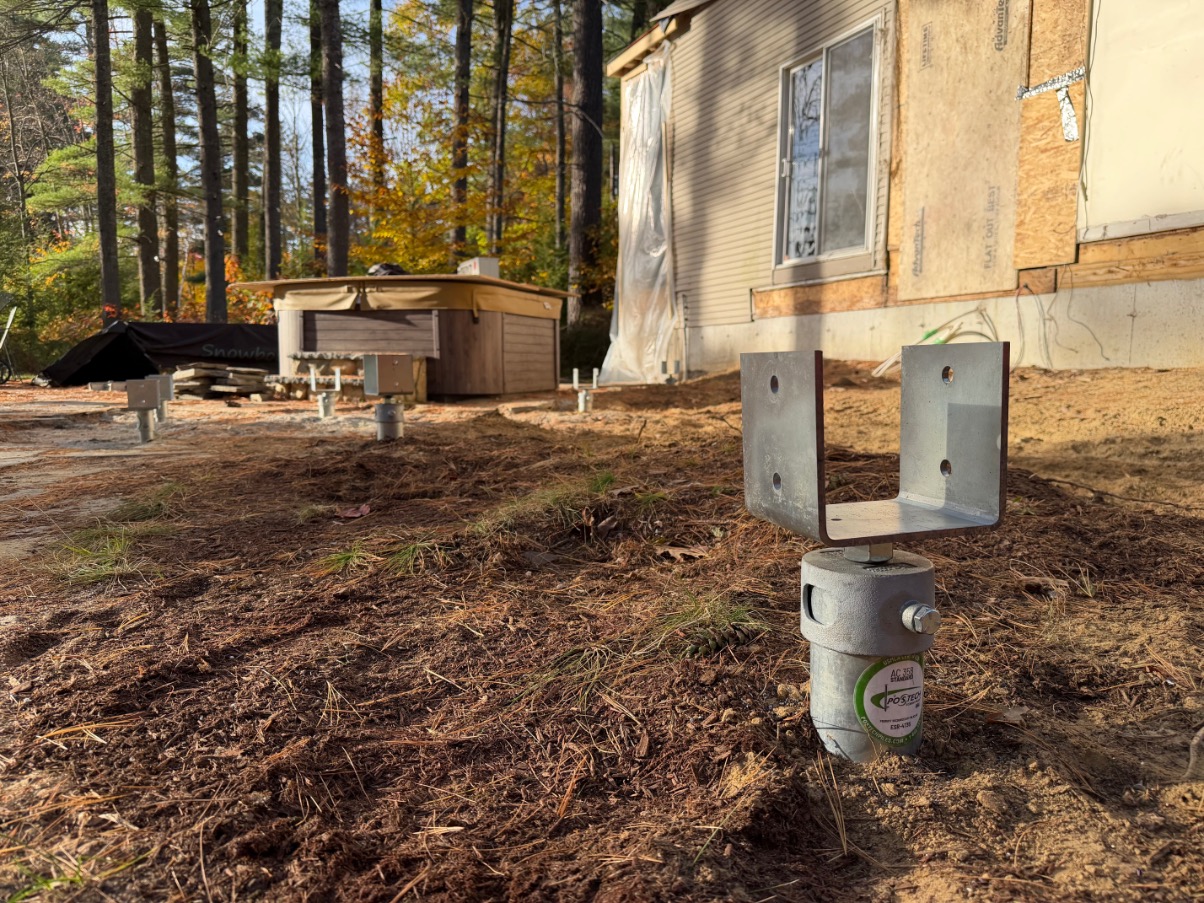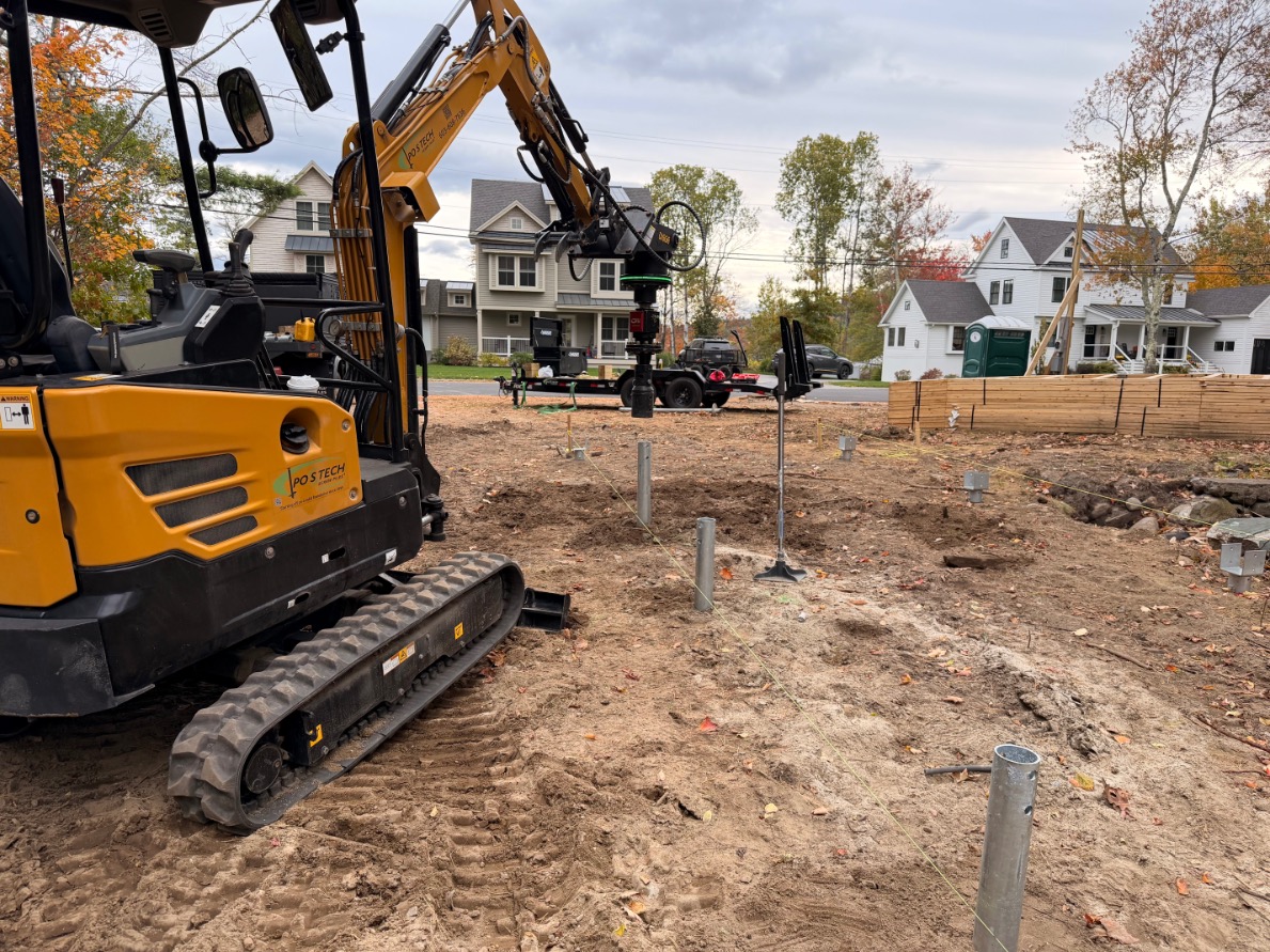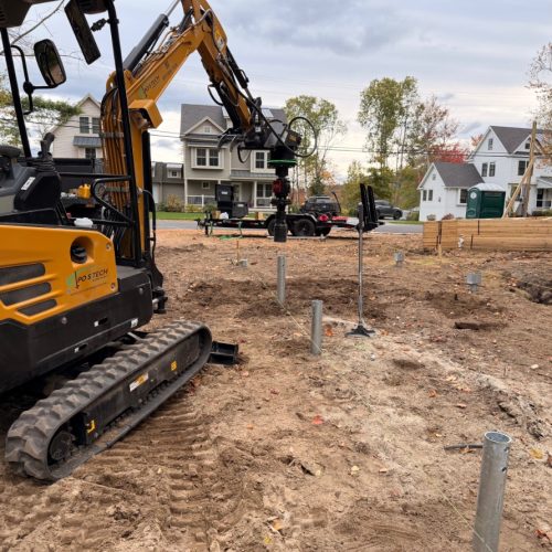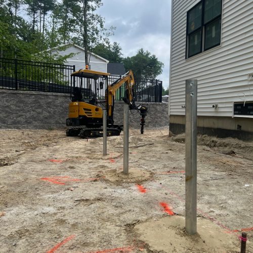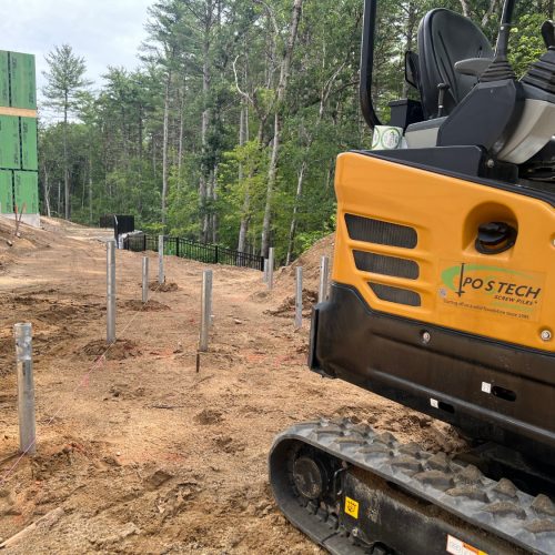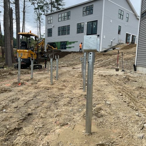 Postech Lakes Region partnered with Postech Rhode Island to install over almost a hundred 2 ⅜” helical piles across several housing developments in central Massachusetts, providing stable foundations for a variety of open decks.