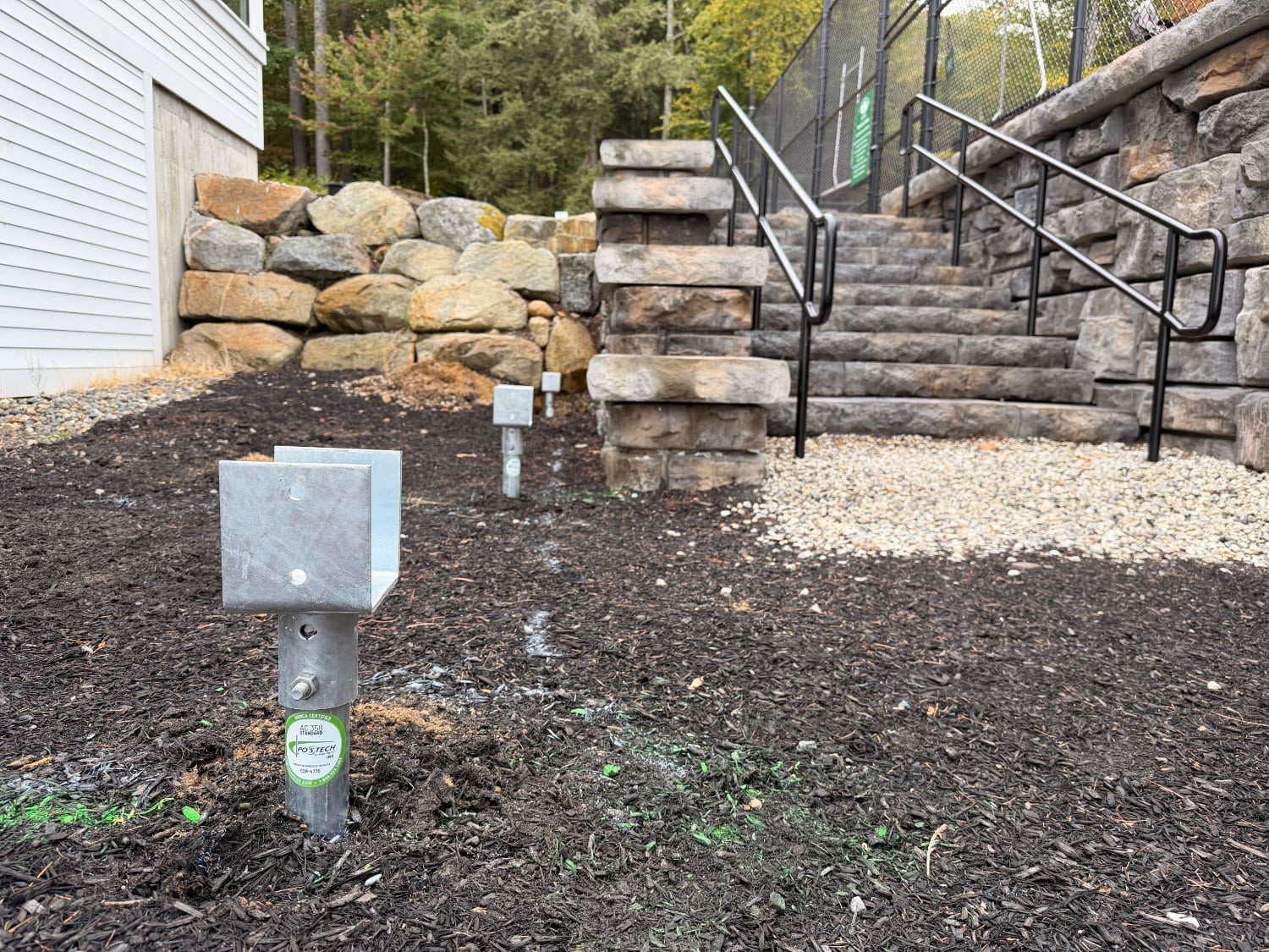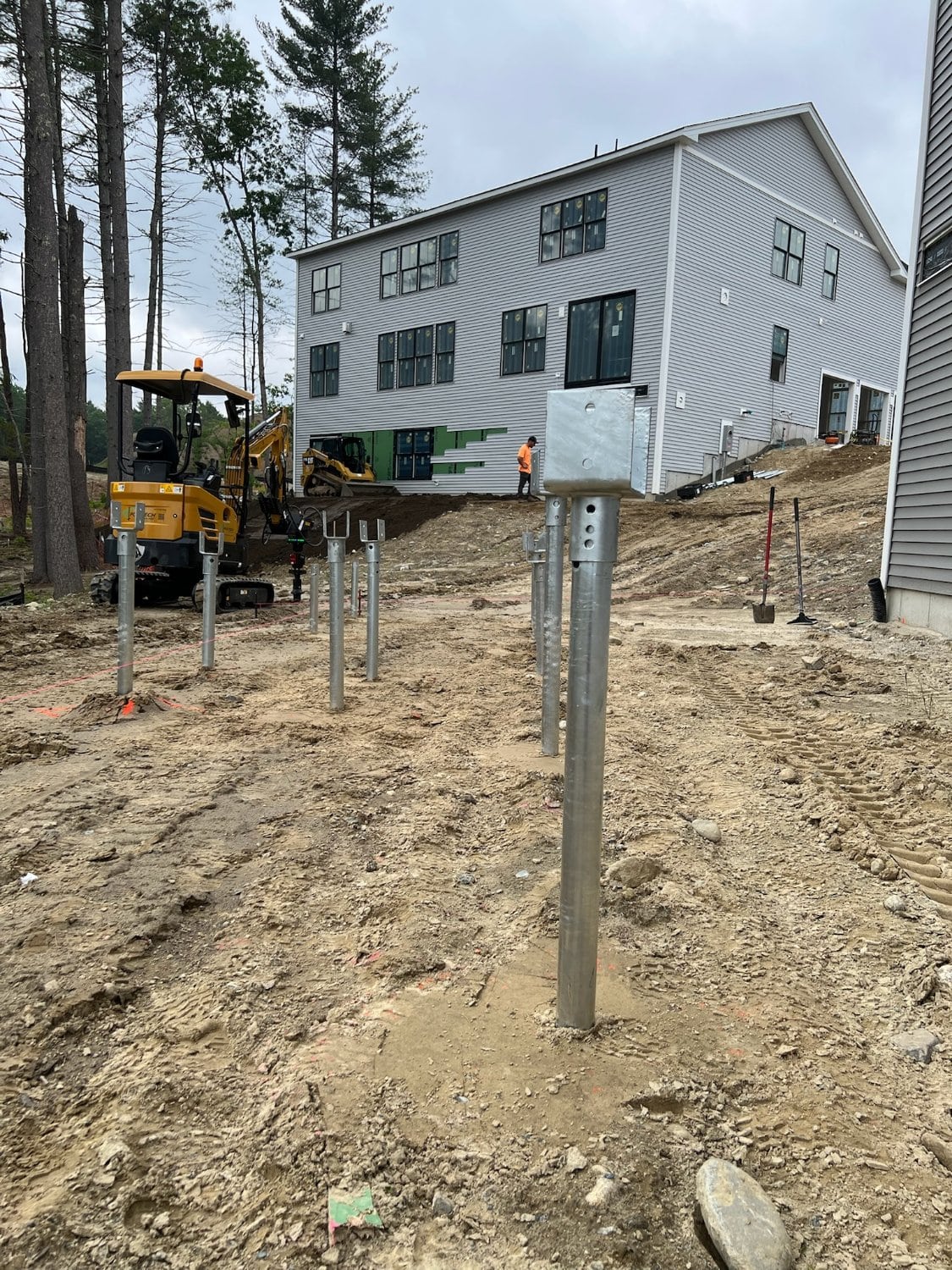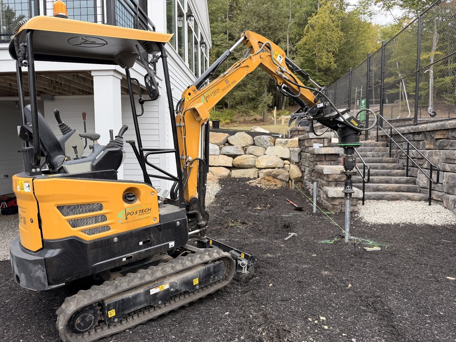Postech Lakes Region partnered with Postech Rhode Island to install over almost a hundred 2 ⅜” helical piles across several housing developments in central Massachusetts, providing stable foundations for a variety of open decks.