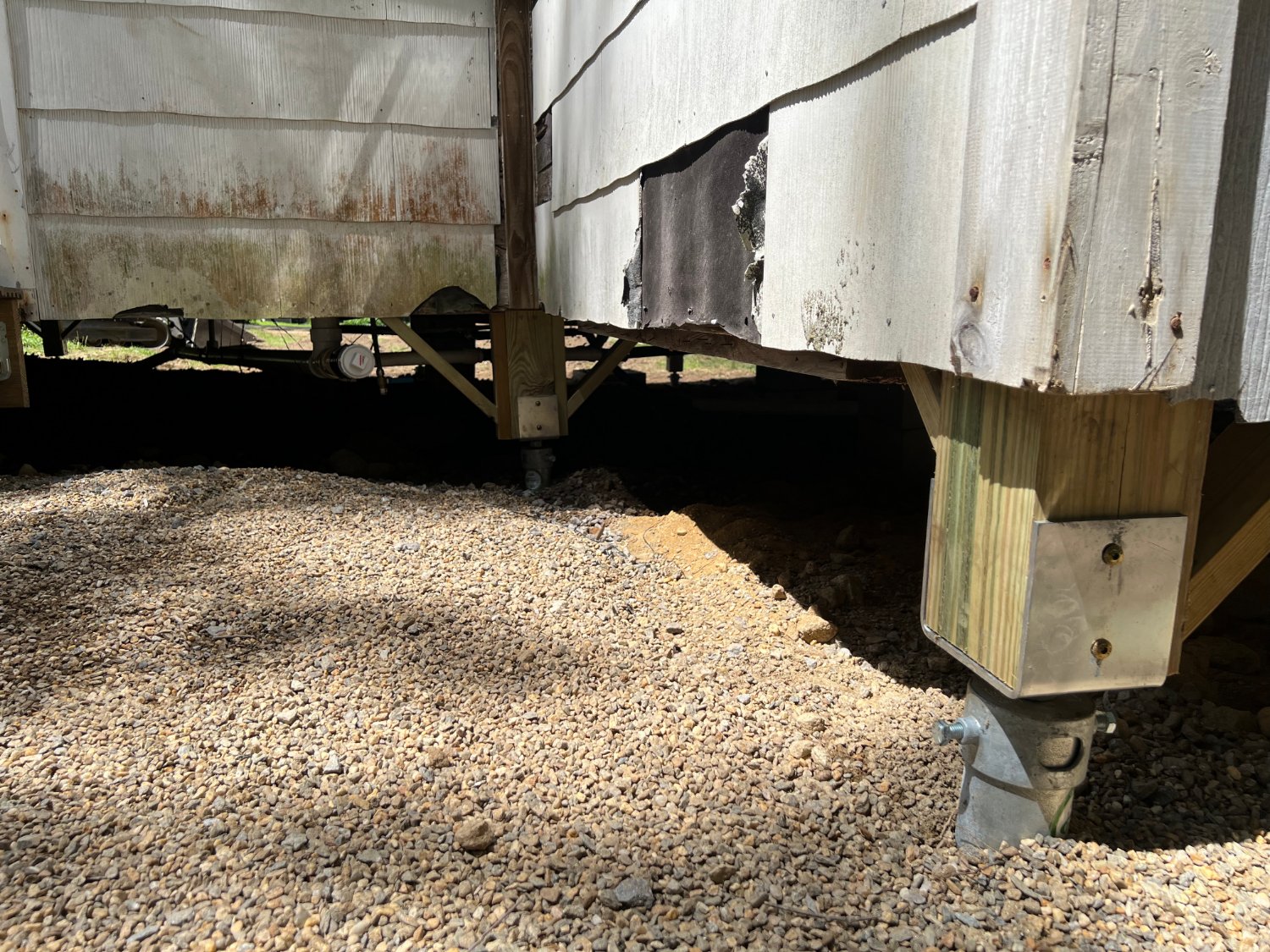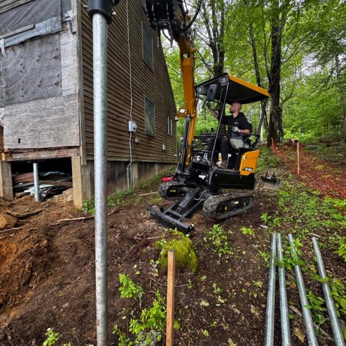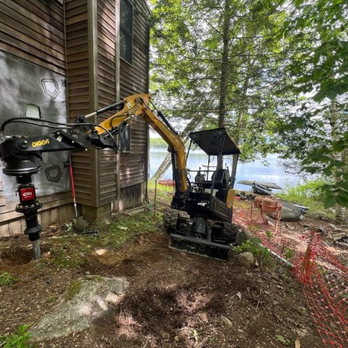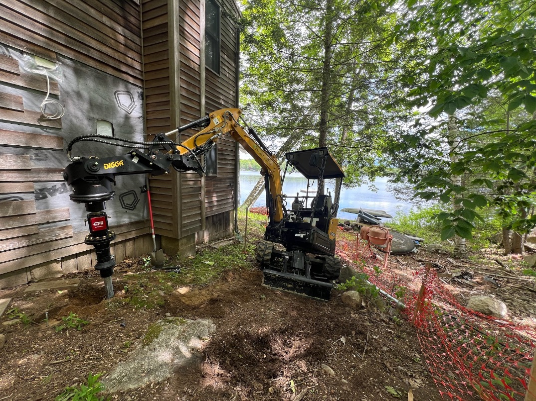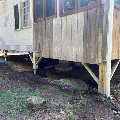 Despite saturated soil conditions, Postech Lakes Region successfully replaced the failing piles beneath this settling cottage. With new helical piles in place, the structure is now secure and built to stand firm for years to come.