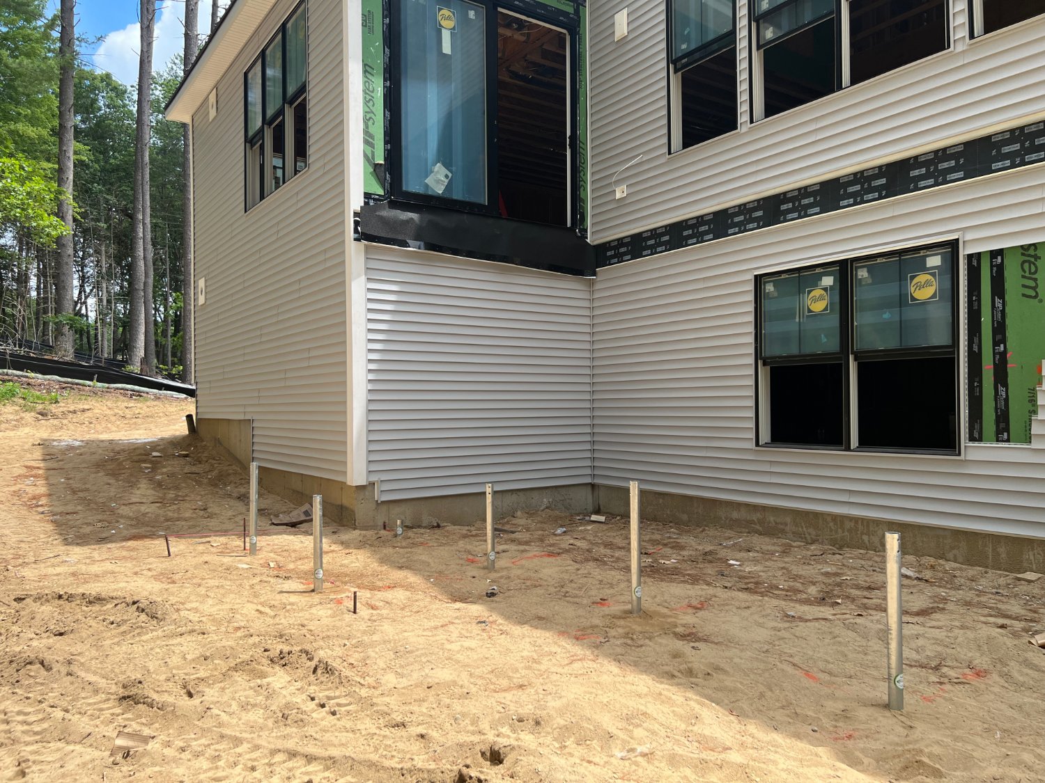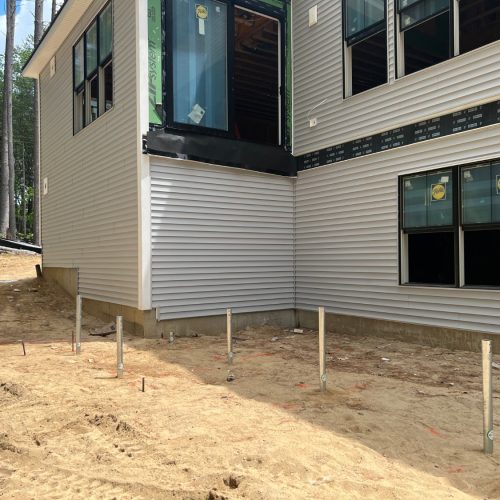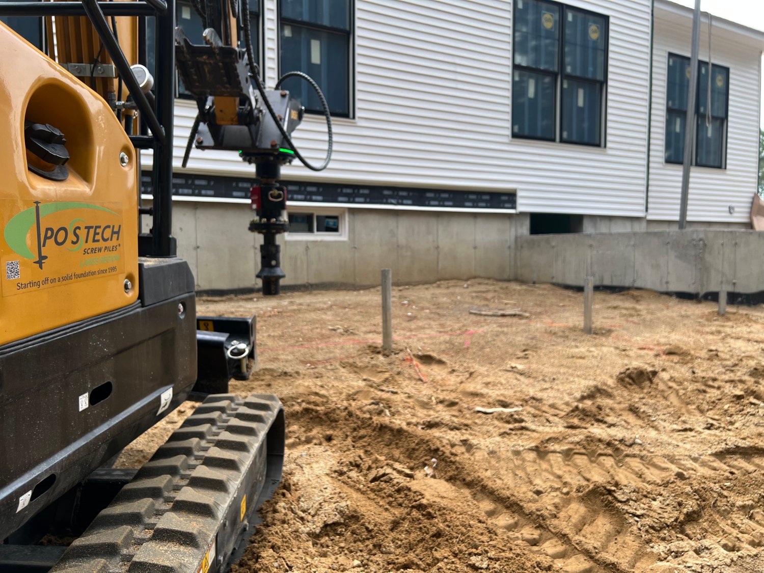 Postech Lakes Region installed 2 ⅜” and 3 ½” helical piles to support a new second-floor addition and screen room below. The builder chose helical piles for their speed, minimal impact, and engineered stability, they were ideal for the site's challenging soil conditions.